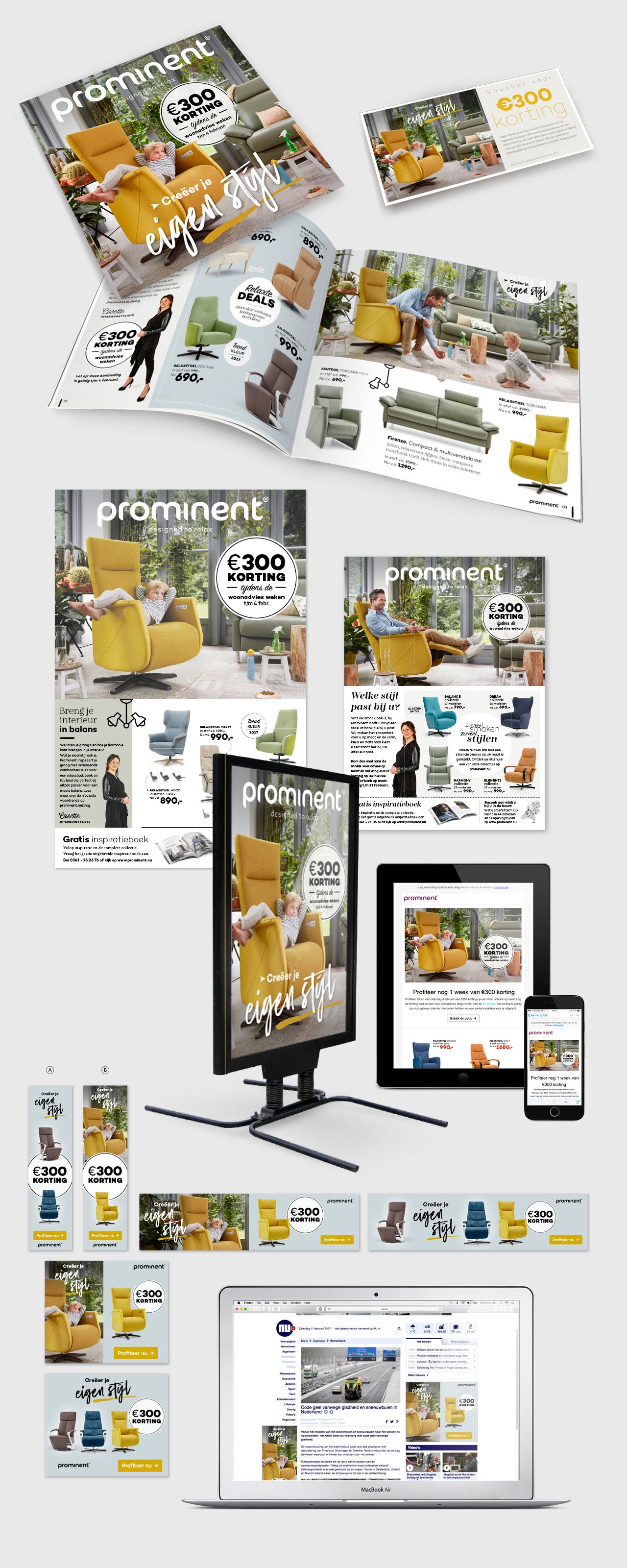 Uitwerken van schets en drukklaar aanleveren van 2 à 3 wekelijkse campagne-uitingen voor zowel offline als online media.